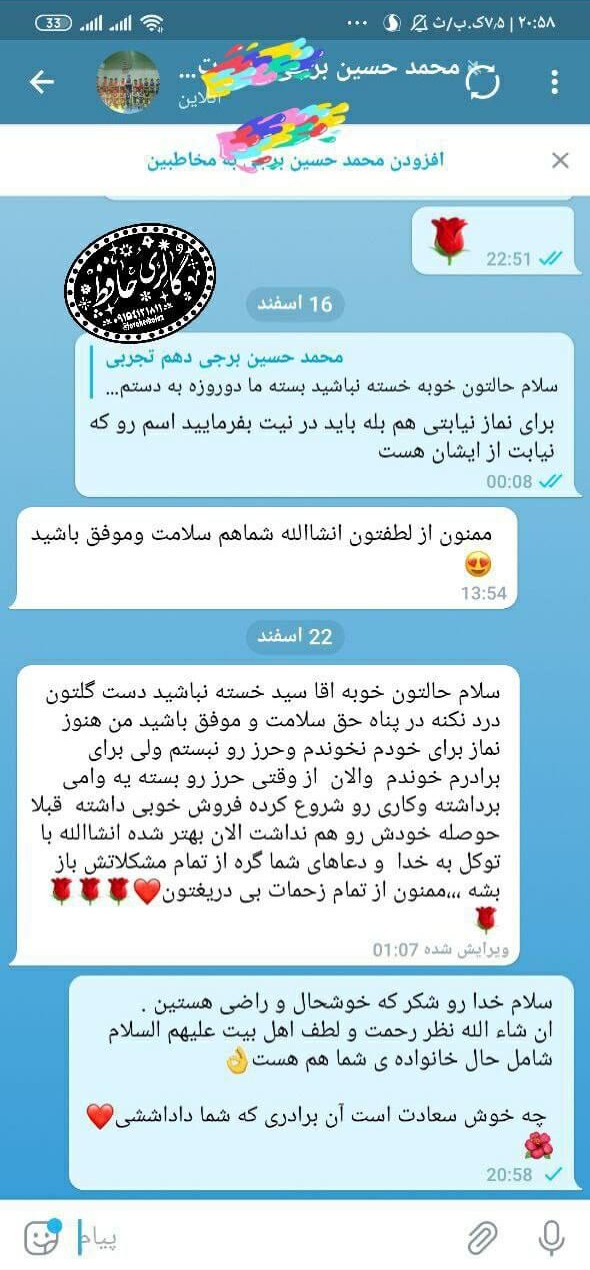 شخصی برای برادرش حرز تهیه کرد. پس از بستن حرز، برادرش موفق به دریافت وام شد، کسبوکاری راهاندازی کرد، فروش خوبی داشت و روحیهاش بهطور چشمگیری بهتر شد.