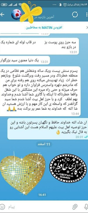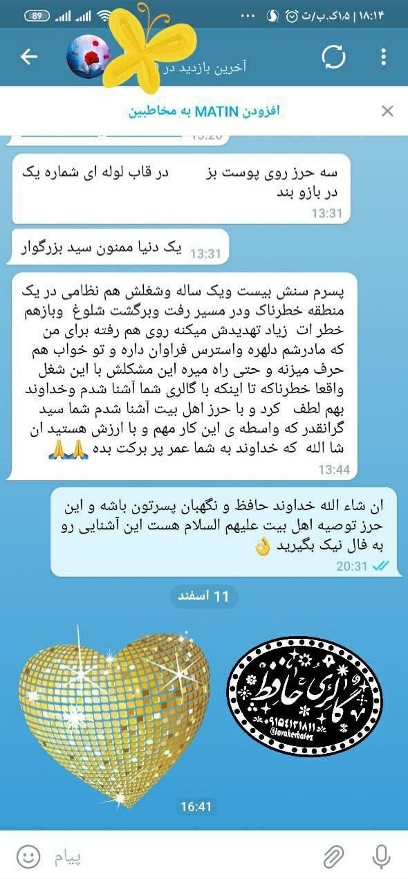 مادری برای پسر ۲۱ سالهاش که در منطقهای خطرناک خدمت نظامی میکرد، حرز تهیه کرد تا از خطرات احتمالی محفوظ بماند.